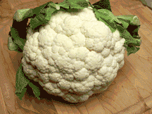 Remove the leaves from the cauliflower. Cut around the underside of the head removing most of the core. Detach the florets where they join at the center. Separate the florets by cutting through the base to make smaller florets. Cut any size floret you like by simply cutting through stem and head of each floret. |
